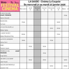 28e FESTIVAL CINEMA TELERAMA - DU 21 AU 27 JANVIER 2026 - CINEMA LA COUPOLE - LA GAUDE |